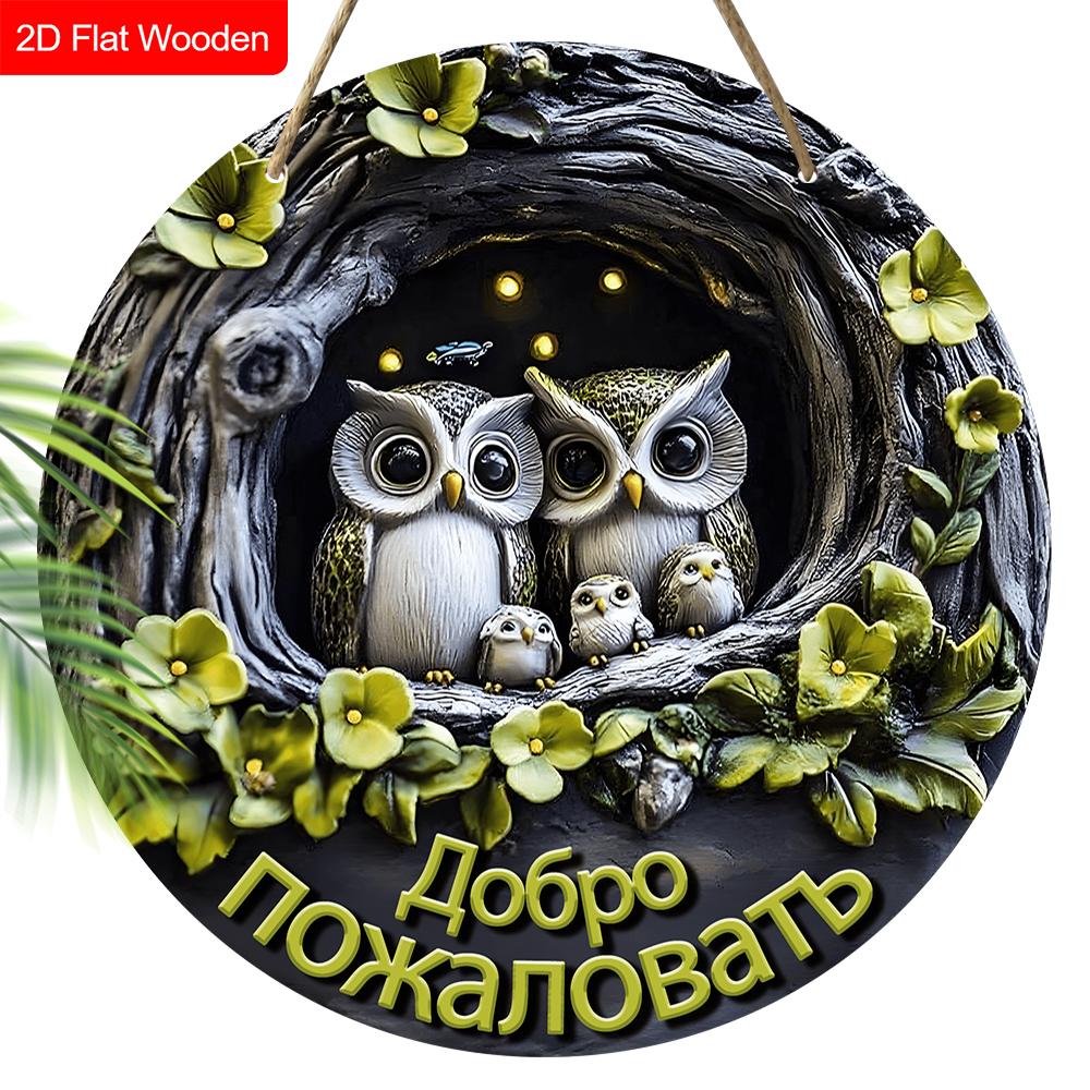 Деревянная табличка с 4 разными стилями сов, Уникальная круглая табличка для входной двери, Настенный декор, Идеальный подарок для друга и семьи
