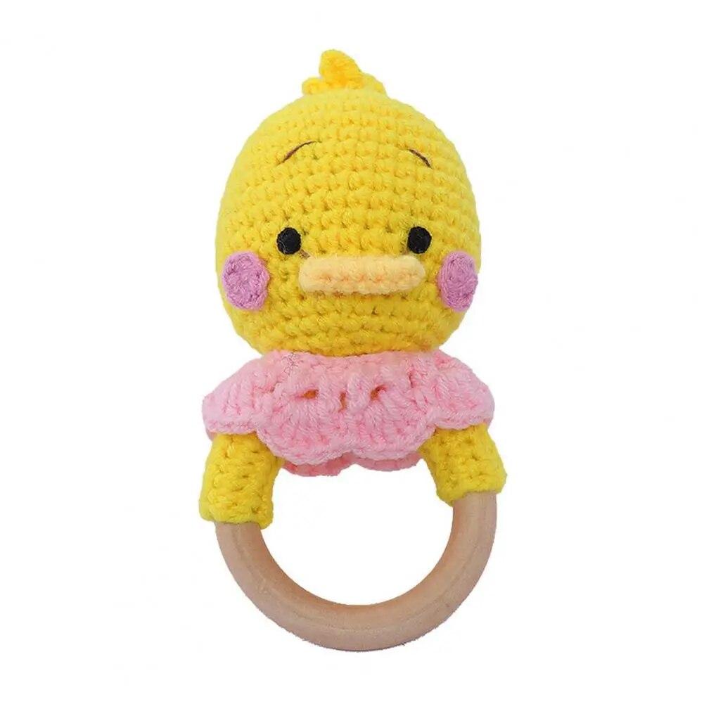 Деревянное кольцо для прорезывания зубов для младенцев, красочные детские кольца для прорезывания зубов, милый мультфильм, утка, цыпленок, лягушка, вязаная кукла, детская игрушка-погремушка для мальчиков