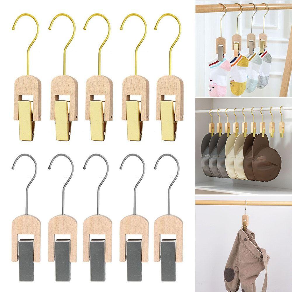 Деревянные/металлические подвесные крючки, серебряные/золотые зажимы для носков, высококачественные поворотные крючки для одежды