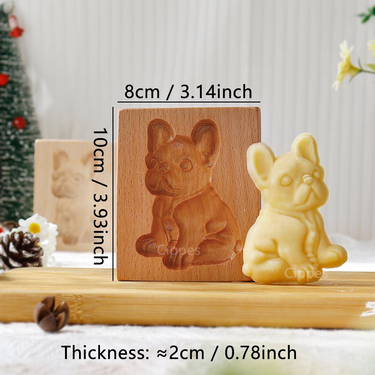 Деревянные формы для печенья на Рождество, с животными, конфетами и цветочным узором, 3D резные, с тиснением, форма для вырезания печенья для праздничной выпечки