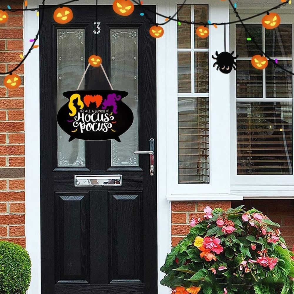 Деревянный знак на дверь Хэллоуина, подвесной декор двери, ремесло, деревянный знак на Хэллоуин, настенный орнамент