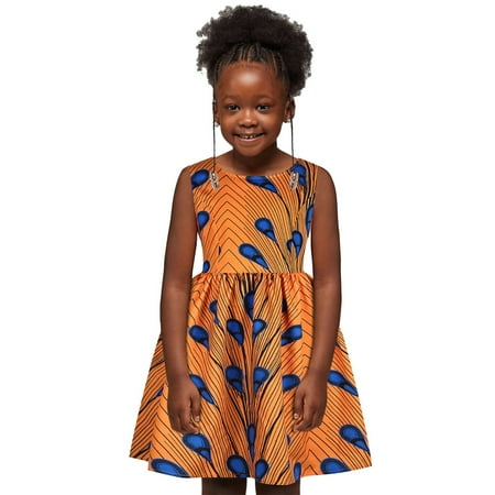 Toddler Kids Baby Girls Dress Sleeveless Round Neck Dress Ankara Princess Dresses Outfits