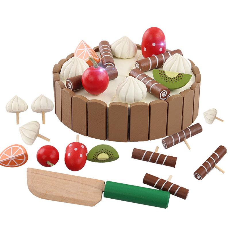 Деревянный набор для ролевой игры «Клубничный торт» для детей - Подарок на день рождения и развивающая игрушка