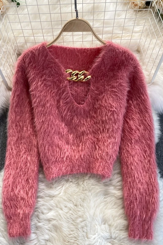 women sweater 2020 autumn winter streetwear clothes korean tops elegant pullover v-neck long sleeve knitted cropped sweater
