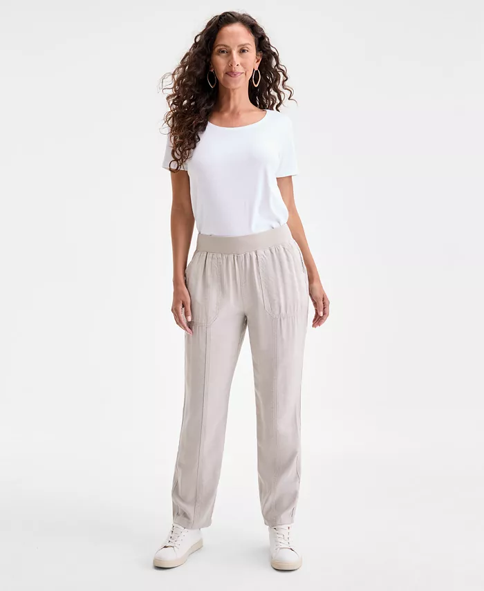 Укороченные брюки с завышенной талией на резинке Petite Mid Rise Pull-On Ankle Pants Style & Co, коричневый/бежевый