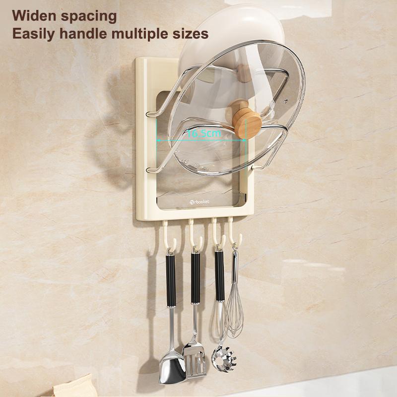 Держатели для крышек кастрюль для кухонного шкафа, настенный органайзер для крышек кастрюль без отверстий с 4 крючками(бежевый)