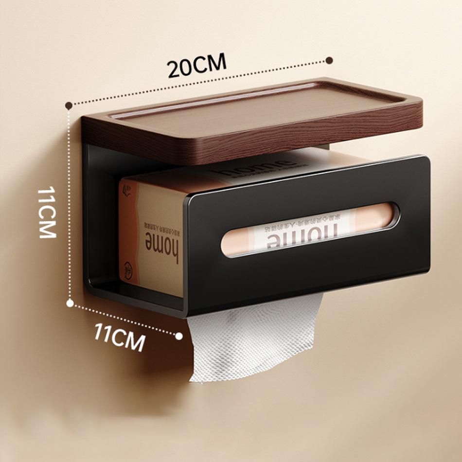 Держатель для бумаги с полкой из цельного дерева, черный, белый, алюминиевый, креативный, для кухни, ванной, туалета, стеллаж для хранения салфеток, ящик для хранения салфеток чёрный