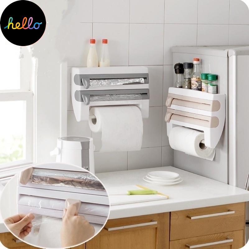 Держатель для кухонной пленки с резаком для рулонной бумаги Стеллаж для хранения бутылок соуса Организатор