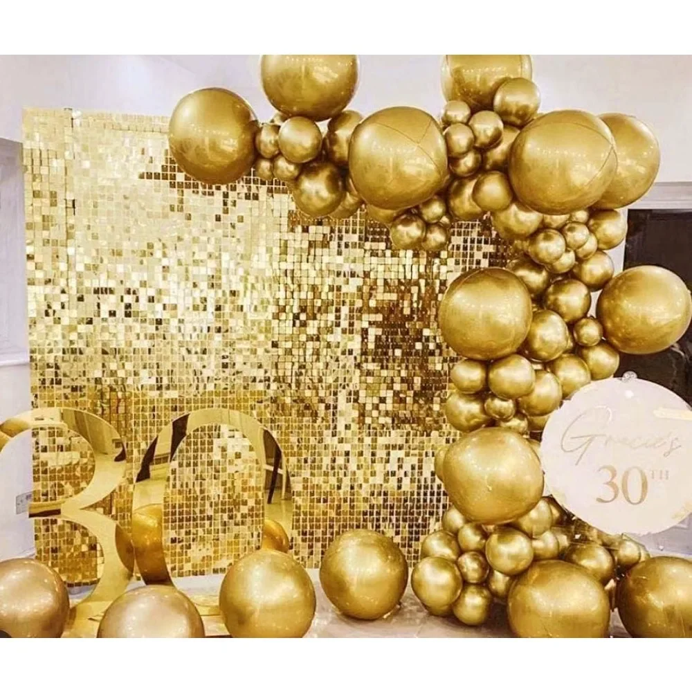 12PC Gold Shimmer Wall Sequin Panel Backdrop Birthday Wedding Background Decoration Wall, Shimmer Wall