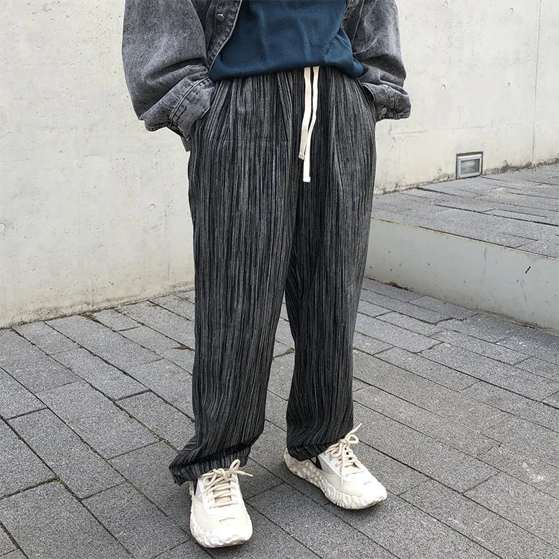 Брюки SYUHGFA мужские с широкими штанинами, повседневные Прямые Штаны в полоску, с эластичной средней талией, в японском стиле, весна 2022
