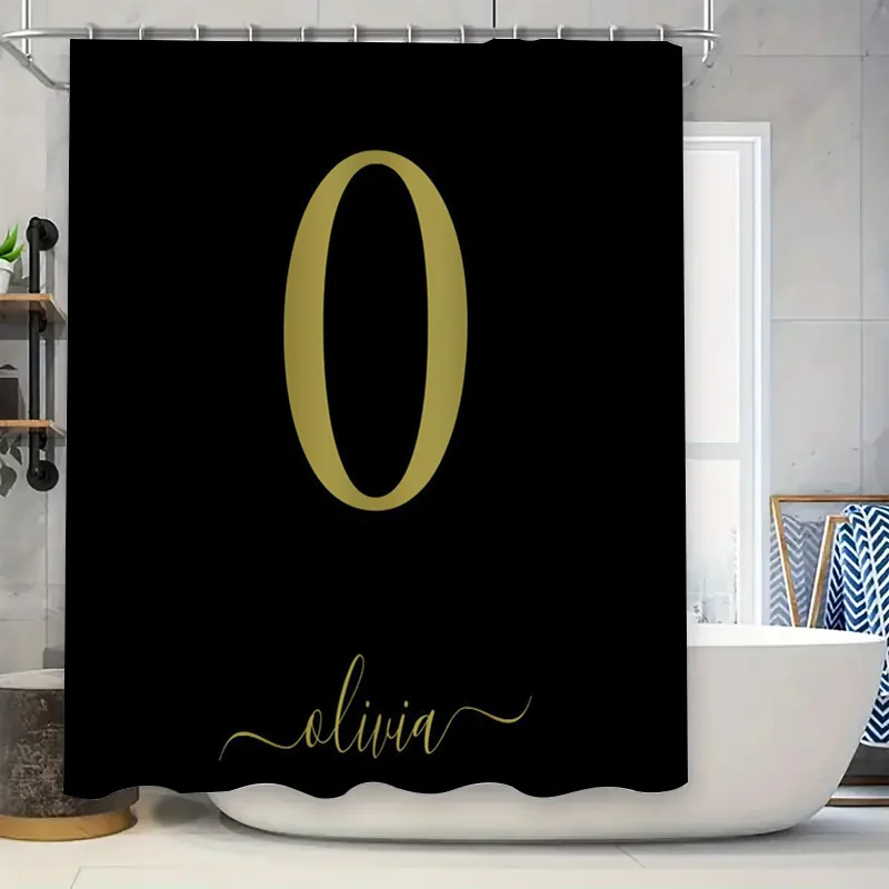 Черная занавеска для душа в ванной комнате с персонализированным именем и большим номером для современного домашнего декора, роскошная водонепроницаемая занавеска с принтом на заказ