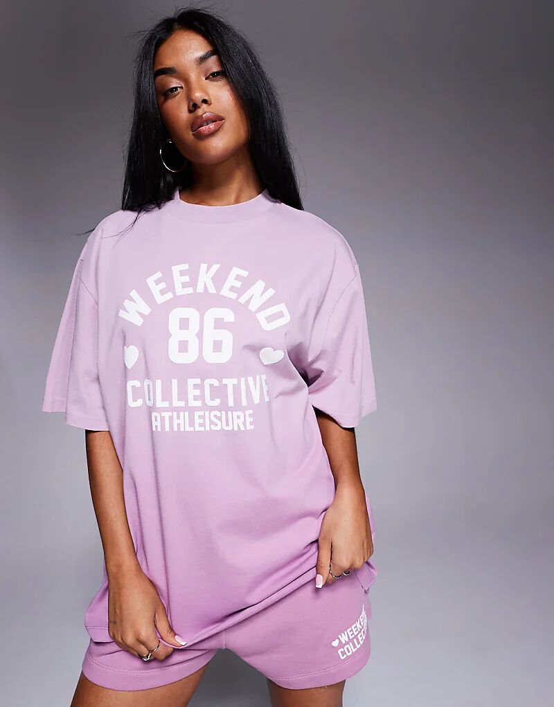 Футболка Weekend Collective co-ord с принтом в виде сердечек с эффектом омбре сиреневого цвета Asos Weekend Collective