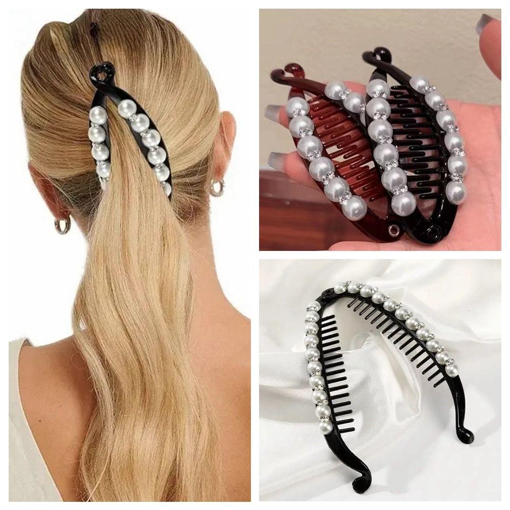 Держатель для хвоста, жемчужный банановый зажим, шпилька, стразы, заколка для волос, модная пластиковая вертикальная заколка для девочек