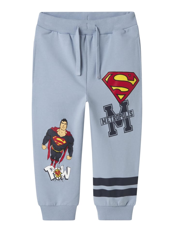 Boy long-sleeved blue shirt with collars and white trousers with a four-piece gentleman suit.