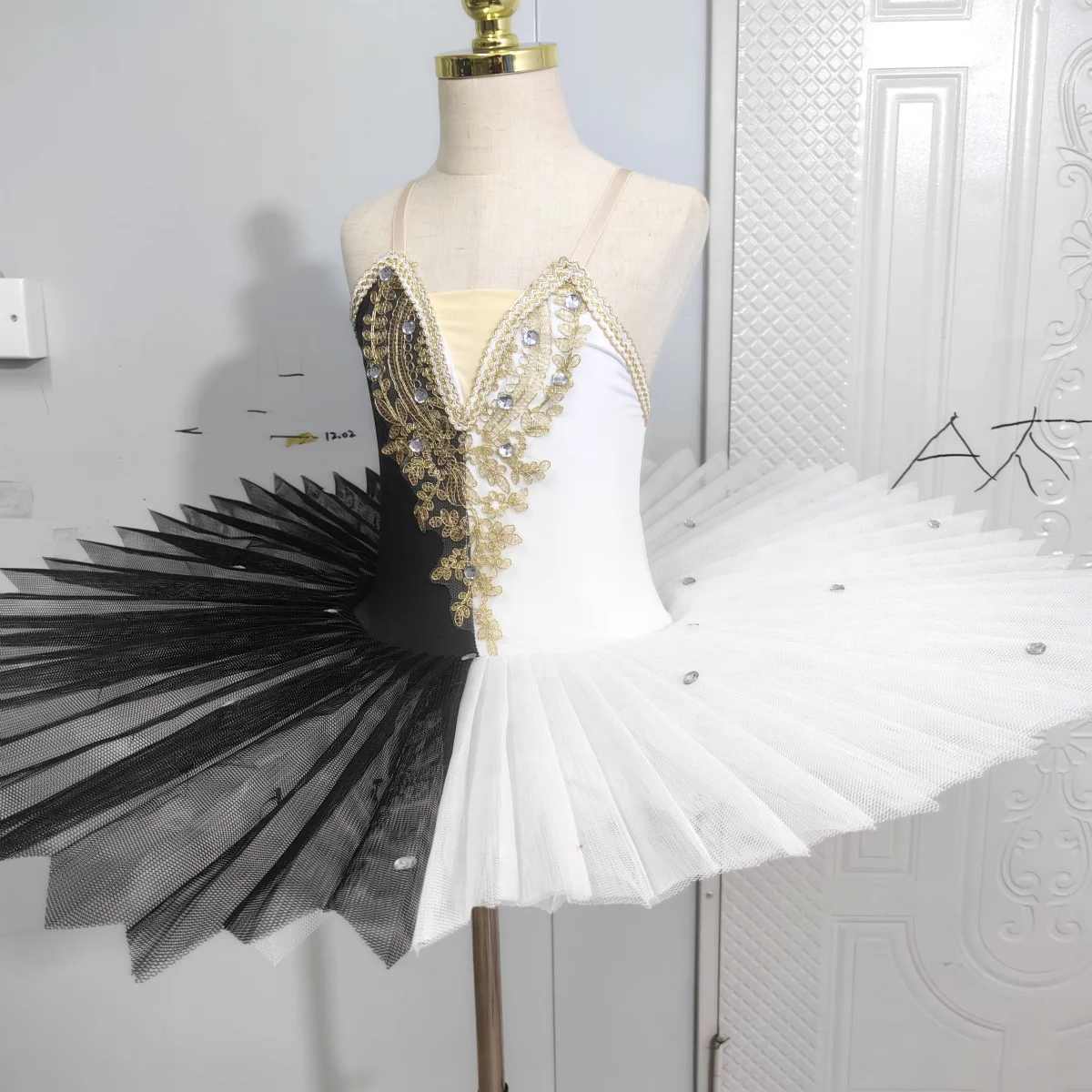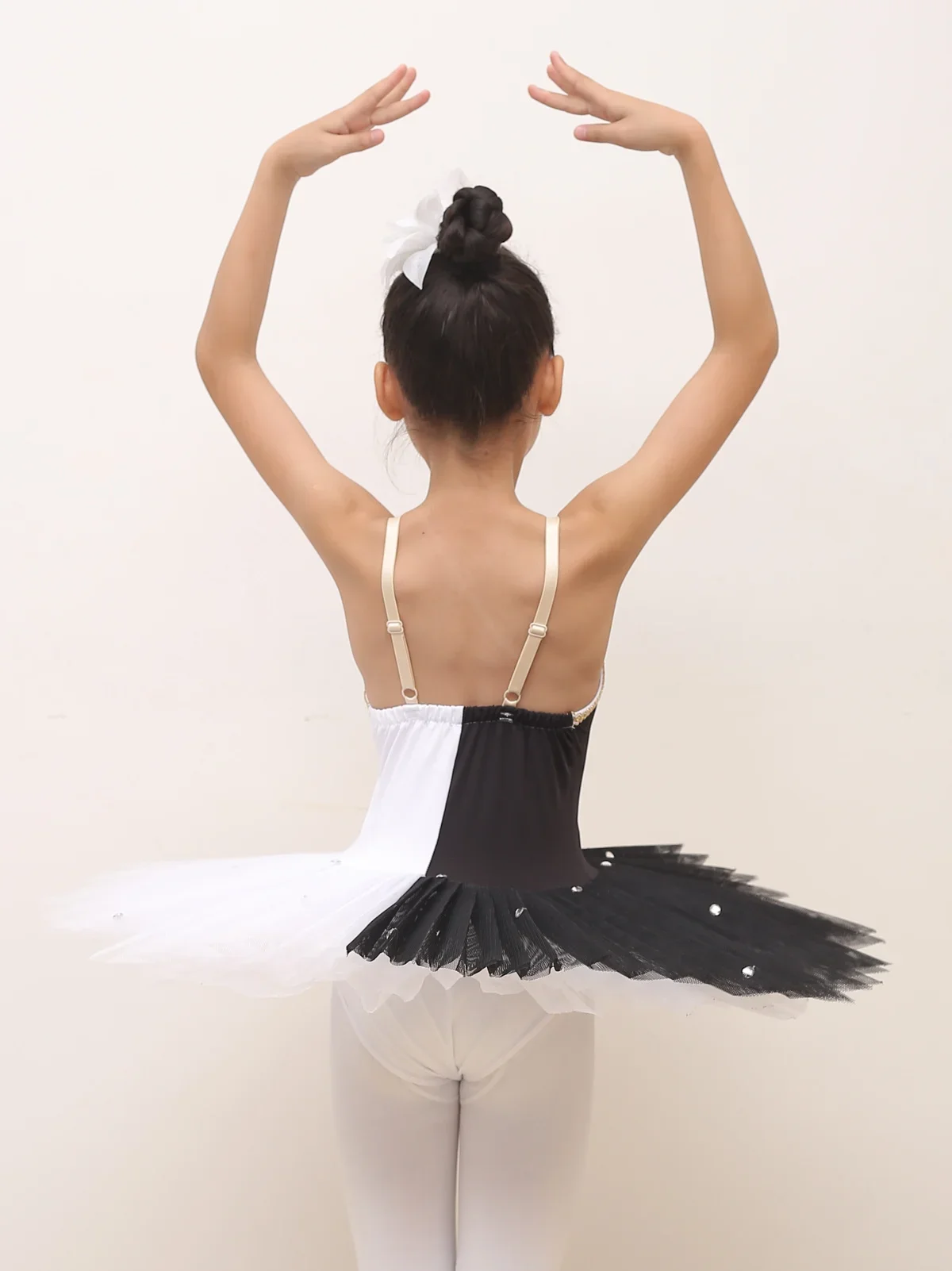 Детская балетная юбка-пачка, костюмы с лебедем и озером, черно-белая танцевальная юбка-пачка на бретельках, сценическая одежда для девочек