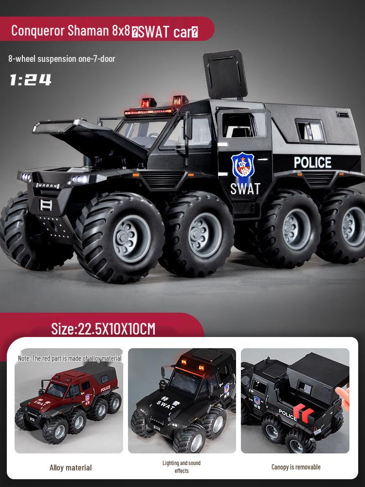Детская большая игрушечная полицейская машина-внедорожник из сплава со светом и звуком, бронированная модель с 7 дверями