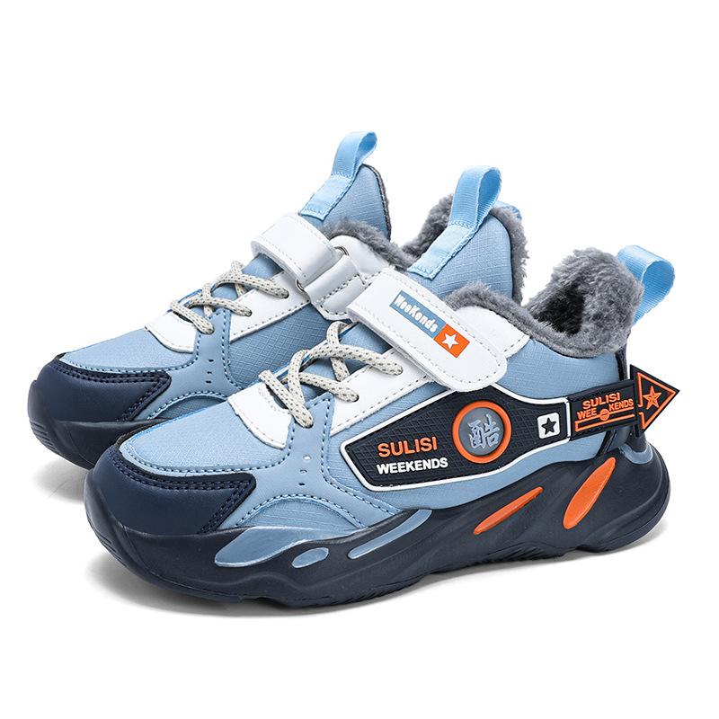 Детская большая хлопковая спортивная обувь зима новая обувь из хлопка с бархатной подкладкой для мальчиков холодная и теплая кожаная повседневная обувь 40