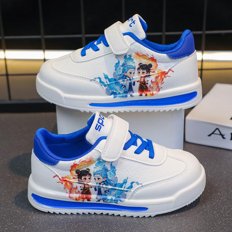 Детская весенне-летняя повседневная сетчатая дышащая детская обувь для бега, популярная мультяшная спортивная сверхлегкая обувь, белые кроссовки для девочек 37