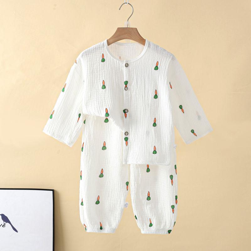 Детская домашняя одежда, летний тонкий комплект, двухслойная марлевая одежда для сна, хлопковая пряжа, одежда для девочек и мальчиков с кондиционером 73