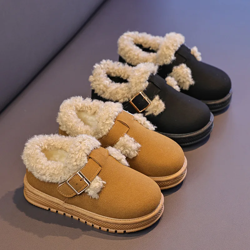 Детская зимняя обувь в стиле ретро, модная повседневная обувь для мальчиков и девочек, замшевая теплая зимняя обувь с круглым носком, новинка 2024, детская обувь на плоской подошве с мягкой подошвой