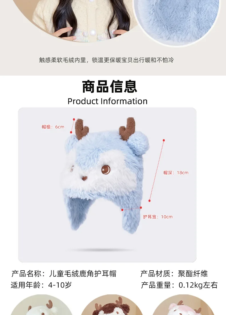 Детская зимняя шапка для мальчиков и девочек, очень милая вязаная шерстяная шапка с оленьими рогами, плюшевая теплая шапка для защиты ушей