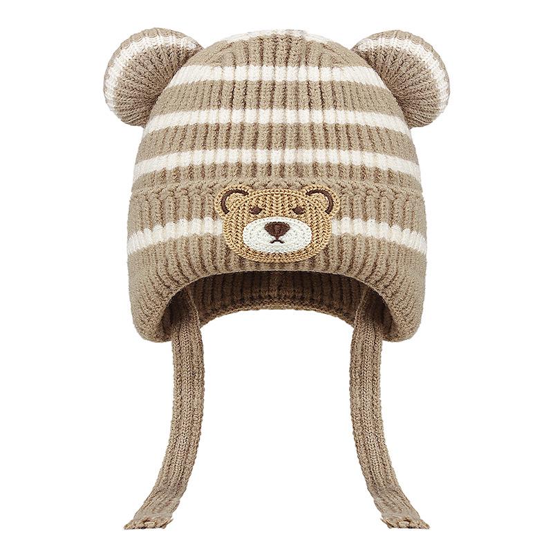 Детская зимняя шапка-ушанка - Полосатая шерстяная шапка с дизайном медведя для мальчиков и девочек One Size кофейный