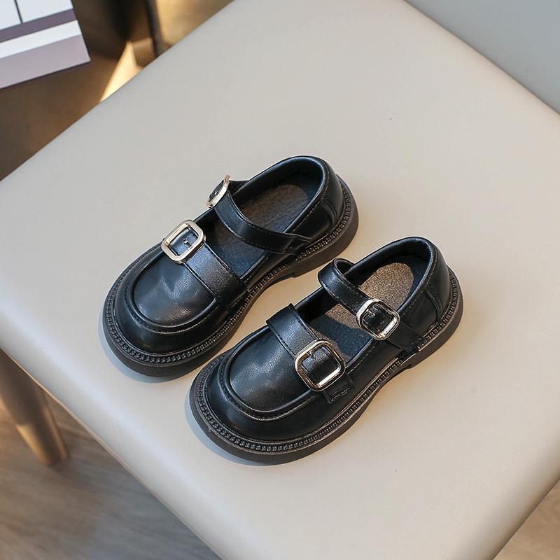 Детская кожаная обувь Ретро Британский стиль Туфли для школьной формы Черный матовый 2025 Весна Осень Мальчики Девочки Балетки Нескользящая Мягкая подошва 23 чёрный