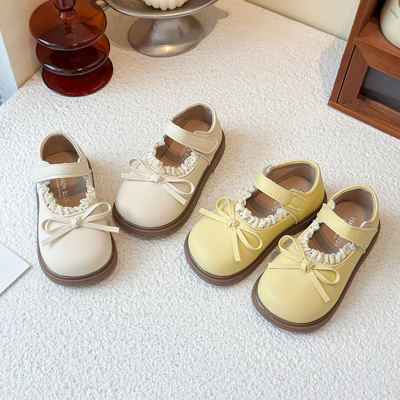 Детская кожаная обувь для выступлений, весенне-осенняя милая повседневная обувь с рюшами для девочек, элегантное модное детское платье на плоской подошве с бантом