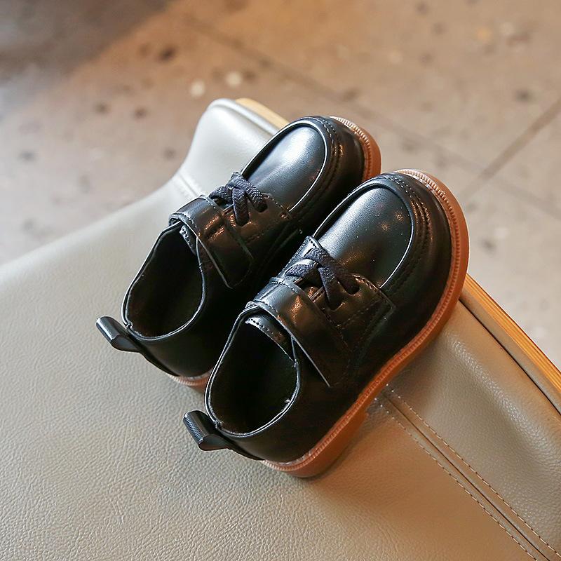 Детская кожаная обувь 2024 года, весна-осень, новая британская кожаная обувь, нескользящая спортивная обувь для мальчиков и девочек, модная повседневная обувь 21insole13.3cm чёрный