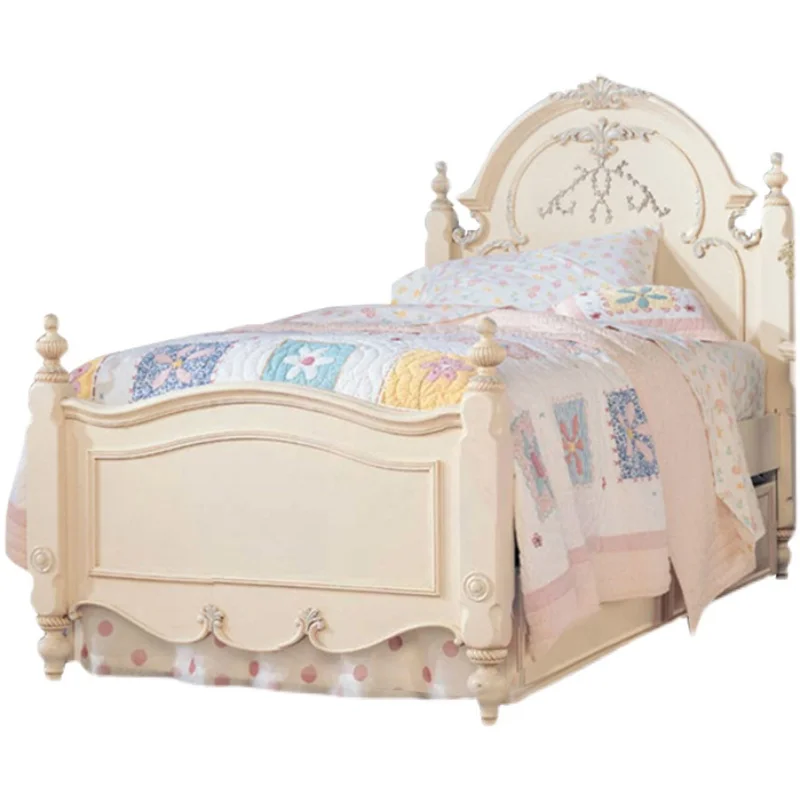 Детская кровать принцессы с французской резьбой односпальная кровать маленькая семейная однотонная кровать 1,5 м белая простая ретро крова...