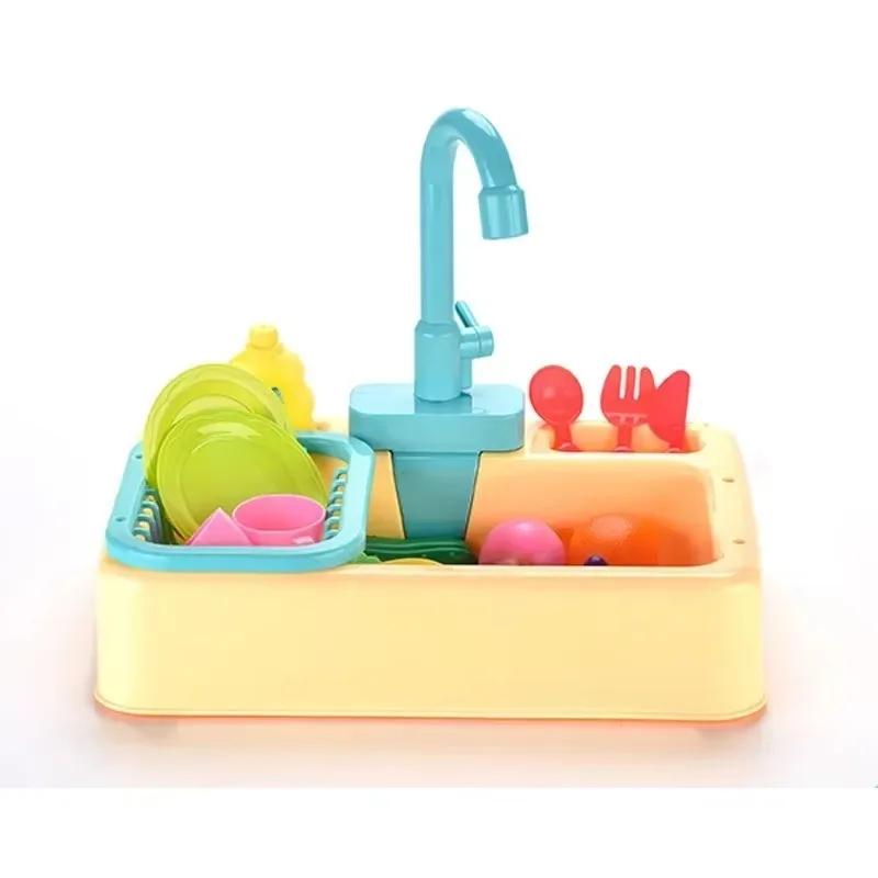 Детская кухонная игрушка для мытья посуды, электрическая игрушечная посудомоечная машина с циркулирующей водой жёлтый