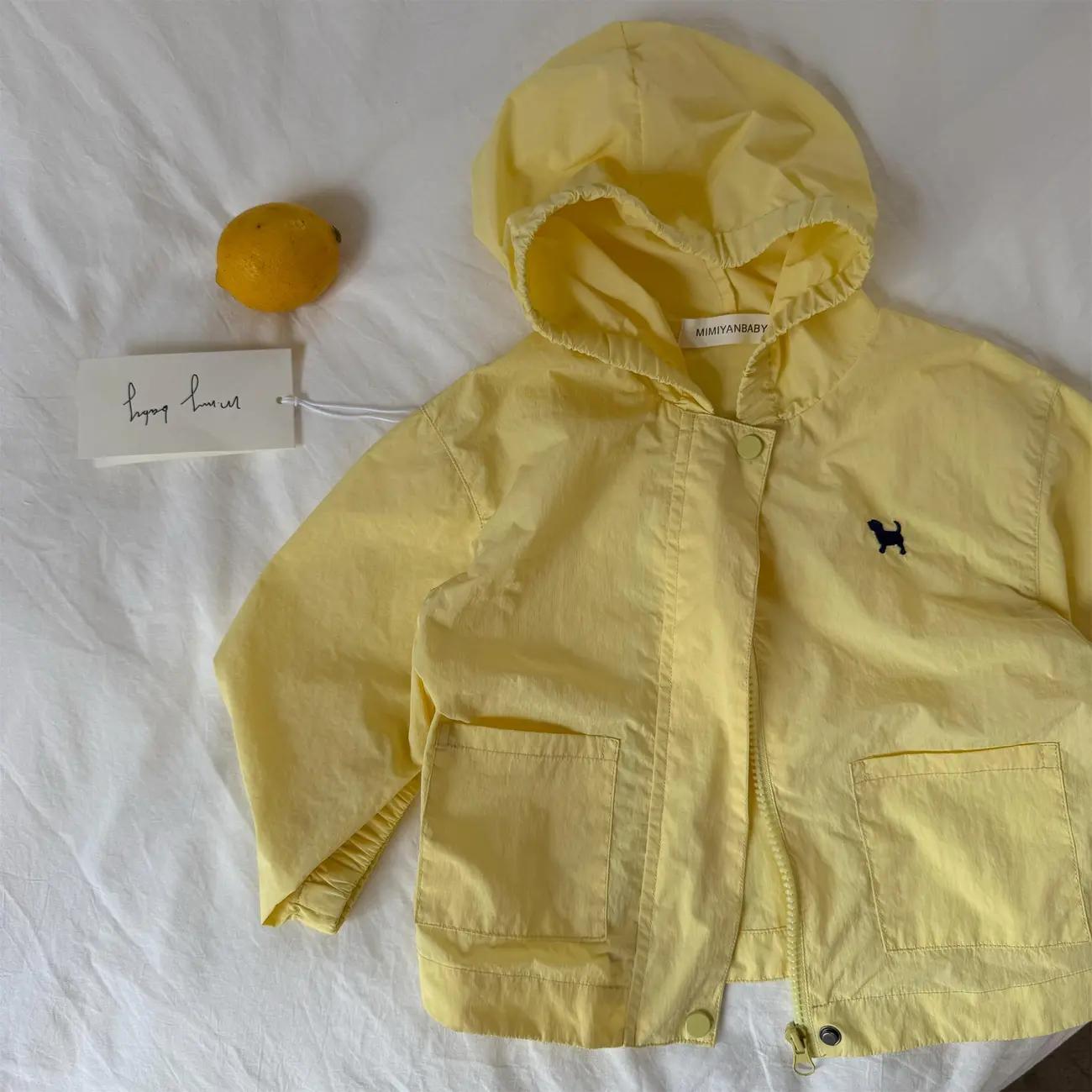 Детская летняя тонкая куртка с капюшоном для защиты от солнца, маленькие и средние размеры, однотонная, дышащая верхняя одежда 90 жёлтый