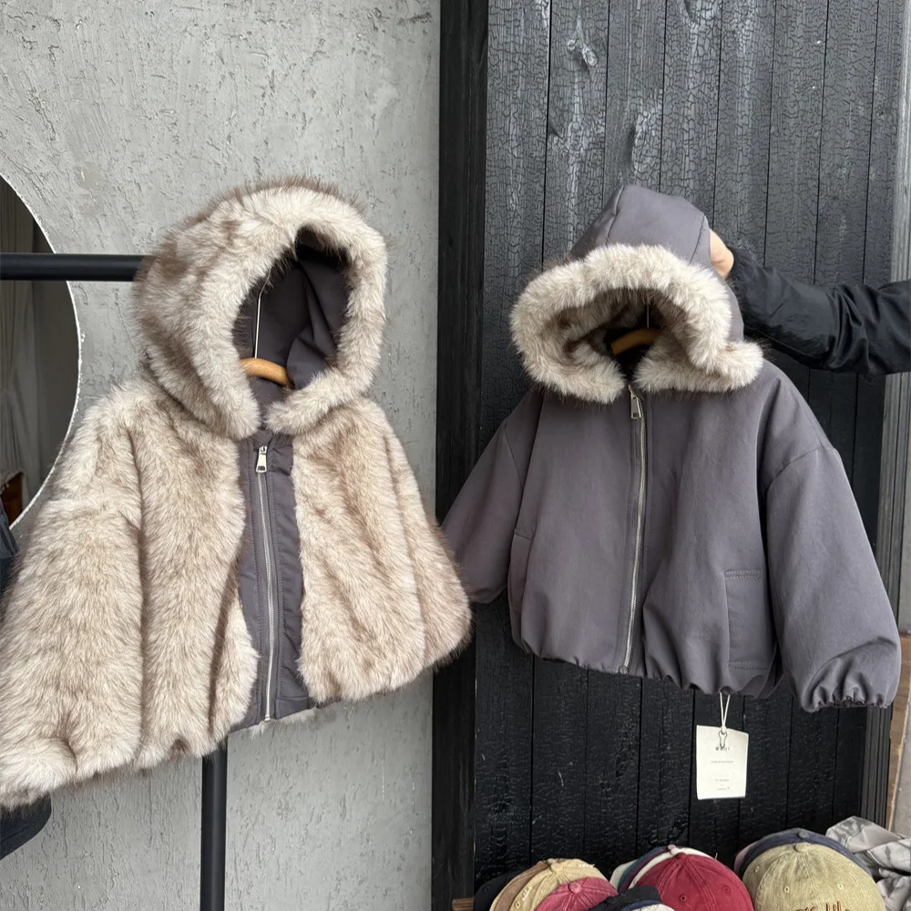 Детская меховая куртка для маленьких мальчиков, новая зимняя толстая теплая парка с капюшоном для маленьких мальчиков, пальто на молнии, двусторонняя меховая верхняя одежда для маленьких мальчиков, пальто