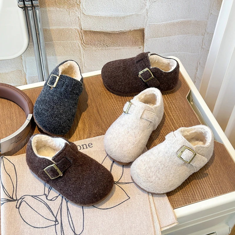 Детская мягкая хлопковая обувь для детей 1–18 лет, теплая обувь на плоской подошве с абрикосовой подкладкой для мальчиков и девочек, серая нескользящая детская меховая обувь с мягкой подошвой