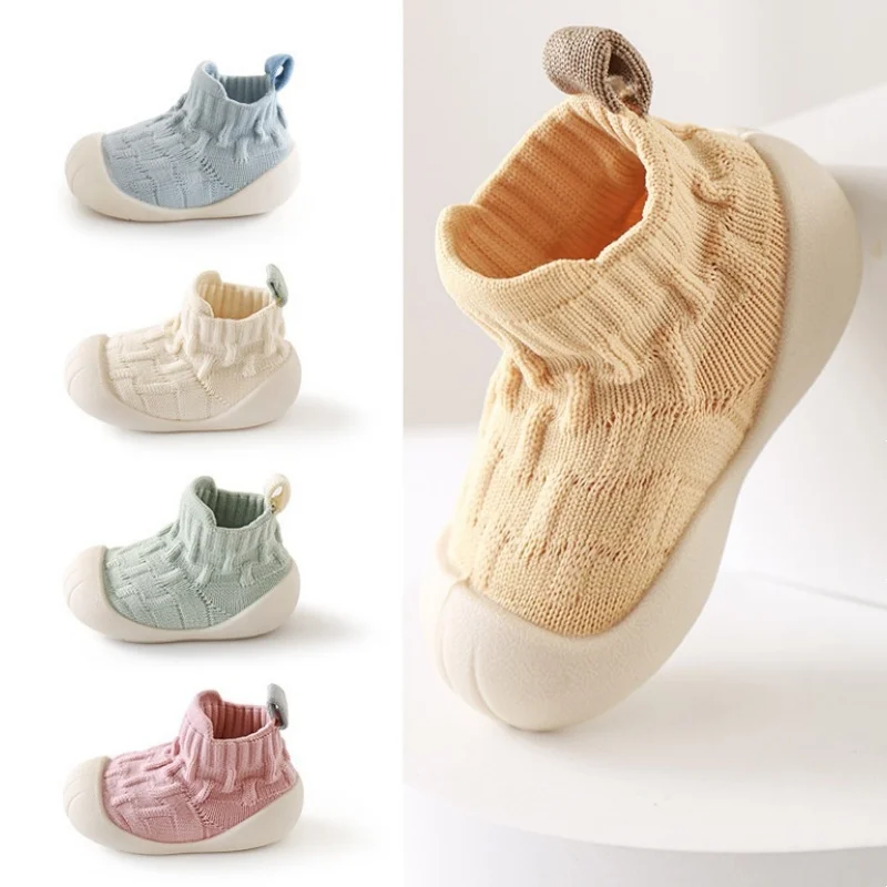 Детская нескользящая напольная обувь для мальчиков и девочек, весенне-осенняя новая милая обувь для малышей на мягкой подошве, вязаные первые ходунки для новорожденных
