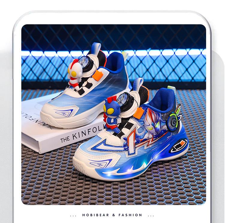 Детская обувь Кроссовки для мальчиков Осень 2025 Новые Светящиеся Папины кроссовки Дышащие Ультрамен Мальчики Вращающаяся Пряжка 26