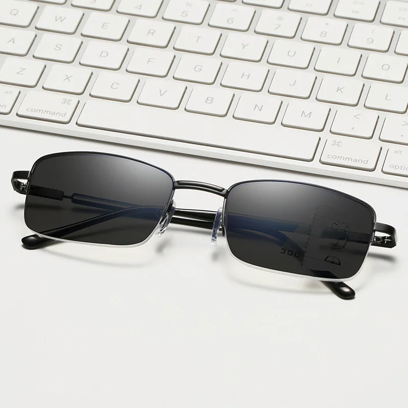Classic Male Half-rim Rectangle Photochromic Multifocal Reading Glasses Anti-blue Dual-use Magnifier