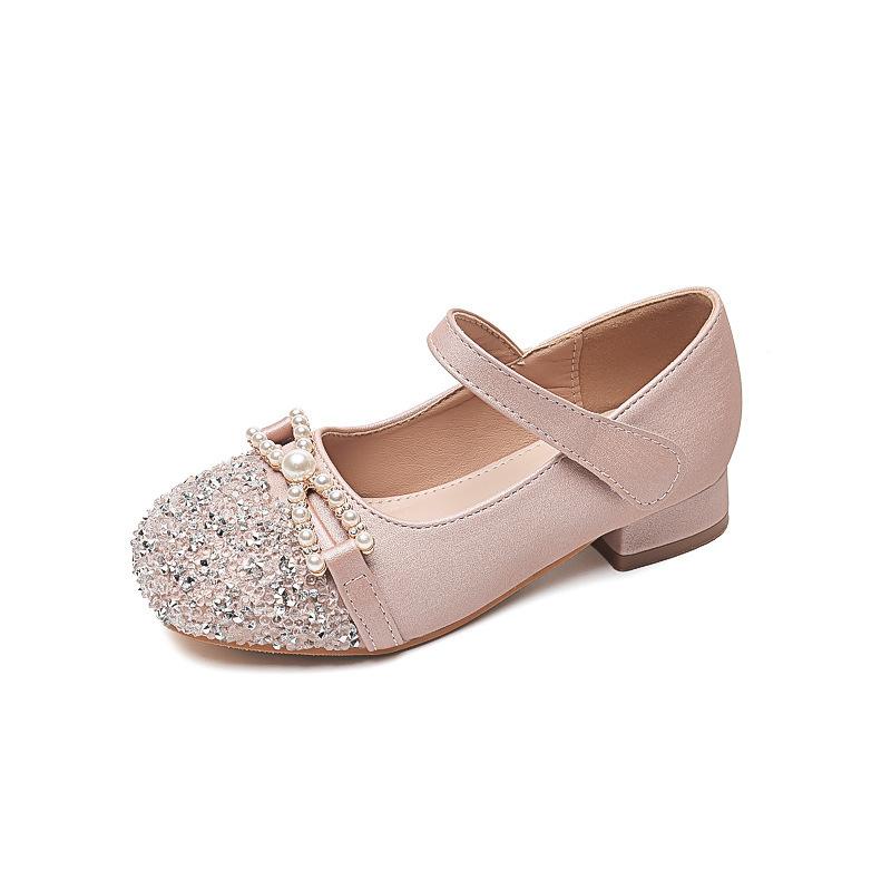 Детская обувь на каблуке Модная Свадебная церемония Вечеринка Кожаная обувь для девочек со стразами Жемчужная Детская обувь принцессы 36 розовый