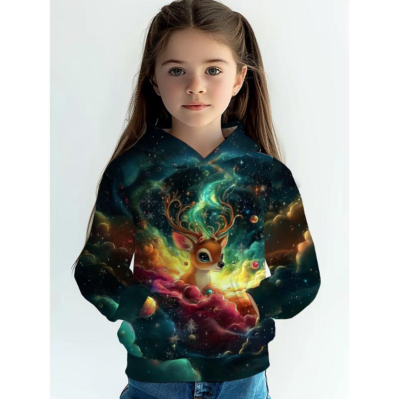 Детская одежда Толстовки с капюшоном для девочек с длинным рукавом и принтом 3D-мультяшных животных Детская весенне-осенняя одежда Повседневная милая уличная одежда для девочек Верхняя одежда 130