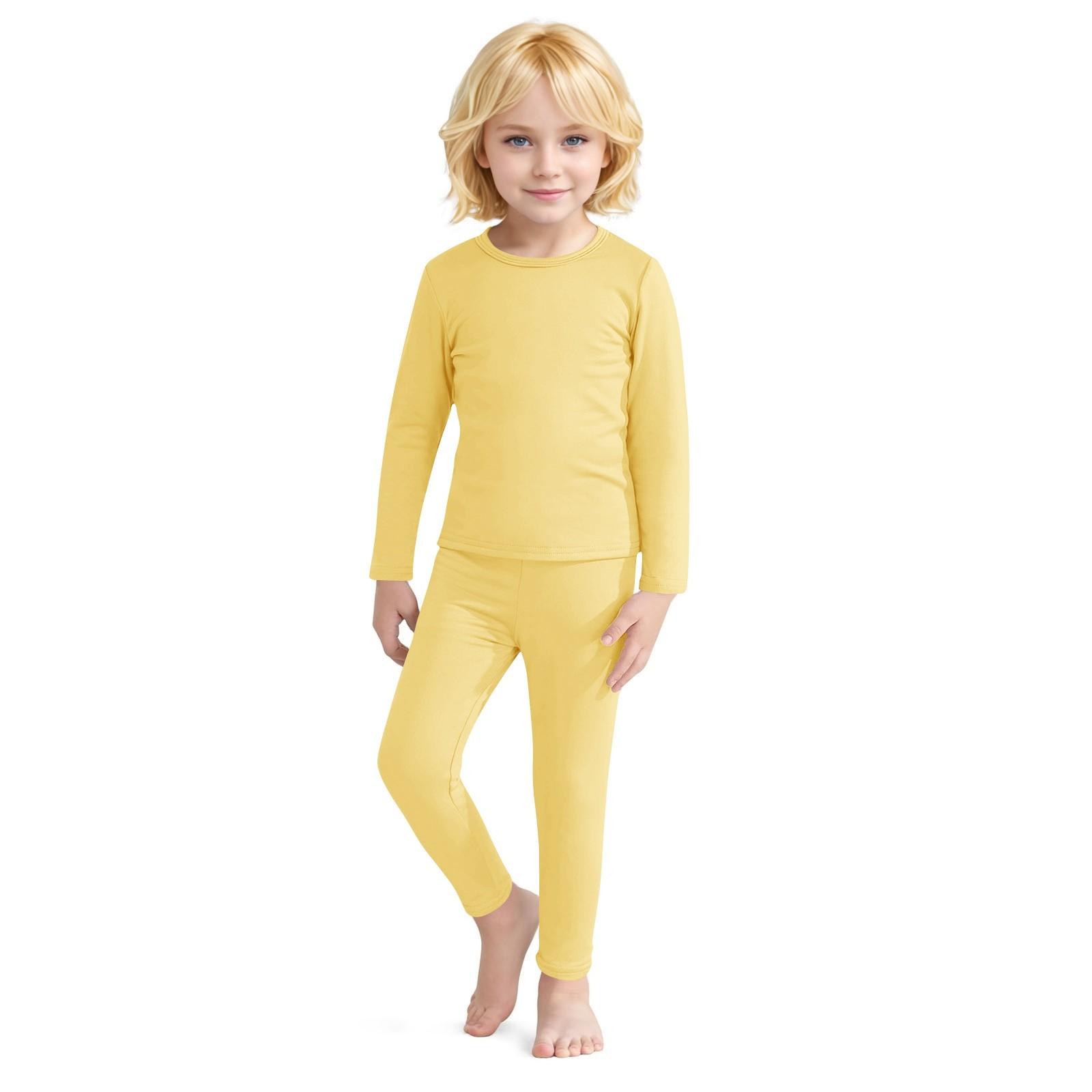 Детская однотонная теплая немецкая флисовая нижняя рубашка, детская домашняя одежда, комплект из двух предметов 140 жёлтый