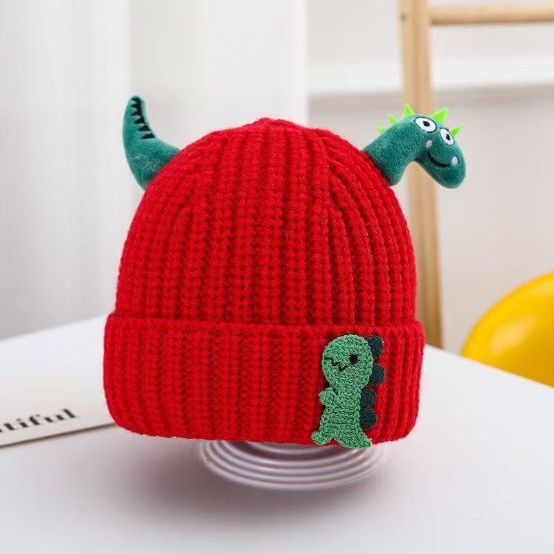 Детская осенне-зимняя шапка милая супер милая шапка из шерсти в форме динозавра зимняя для мальчиков и девочек теплое покрытие вязание