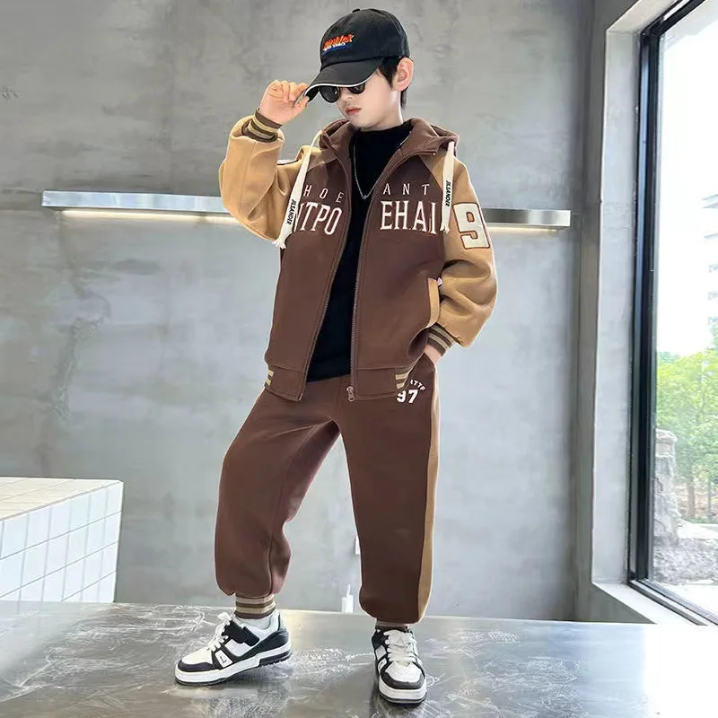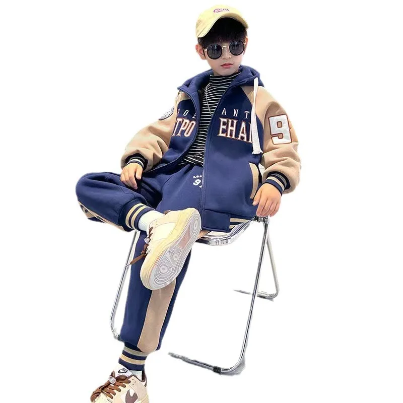 Детская осенняя коллекция, утепленная толстовка на флисовой подкладке, новый стиль 2024, крутая модная зимняя одежда для мальчиков среднего и большого размера