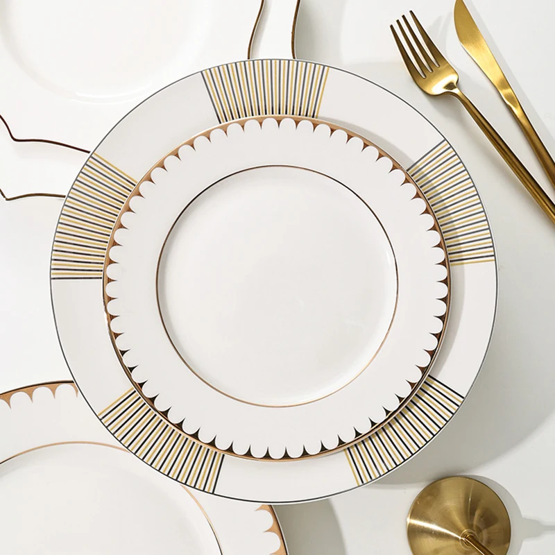 Modern Kitchen Plate Set Splate Luxury Dinner Set Plates and Dishes Bone China Fashion Vajilla Completa De Platos Plate Set