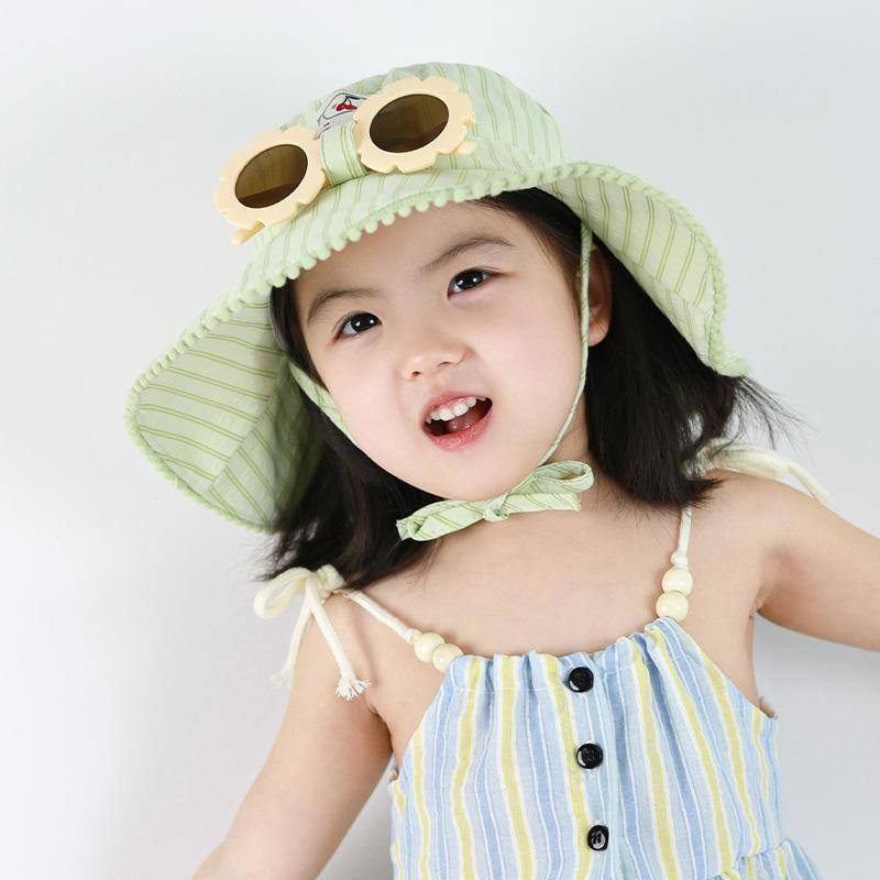 Детская панама с солнцезащитными очками Новый стиль Девочка Летняя с большими полями Защита от солнца