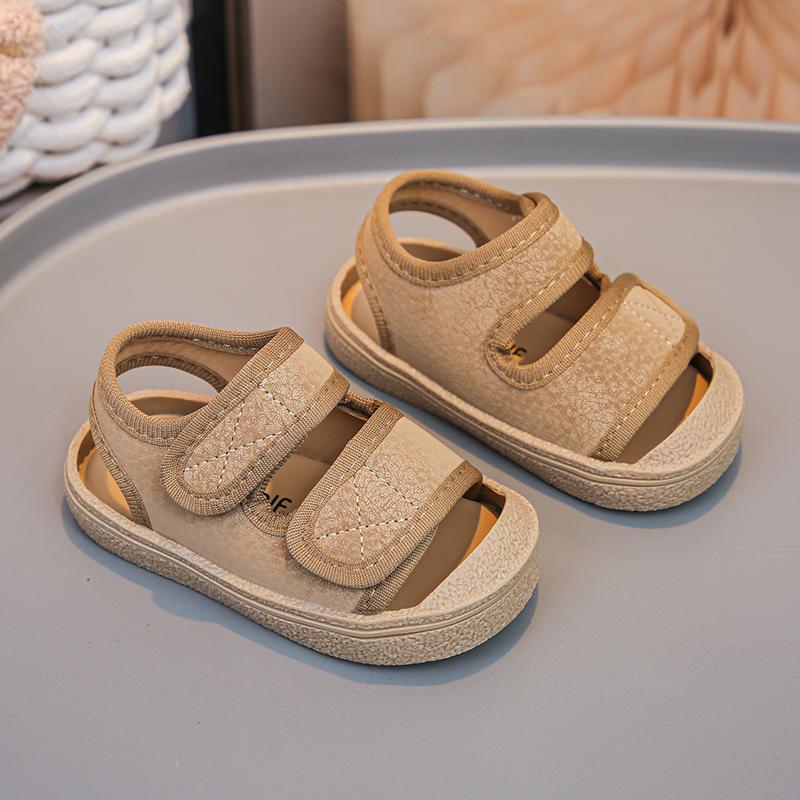 Детская повседневная обувь с защищенными носками, мягкой подошвой, обувь для ходьбы для мальчиков и девочек, нескользящая, ретро, лето 2025, новая детская пляжная обувь, удобная 15 хаки