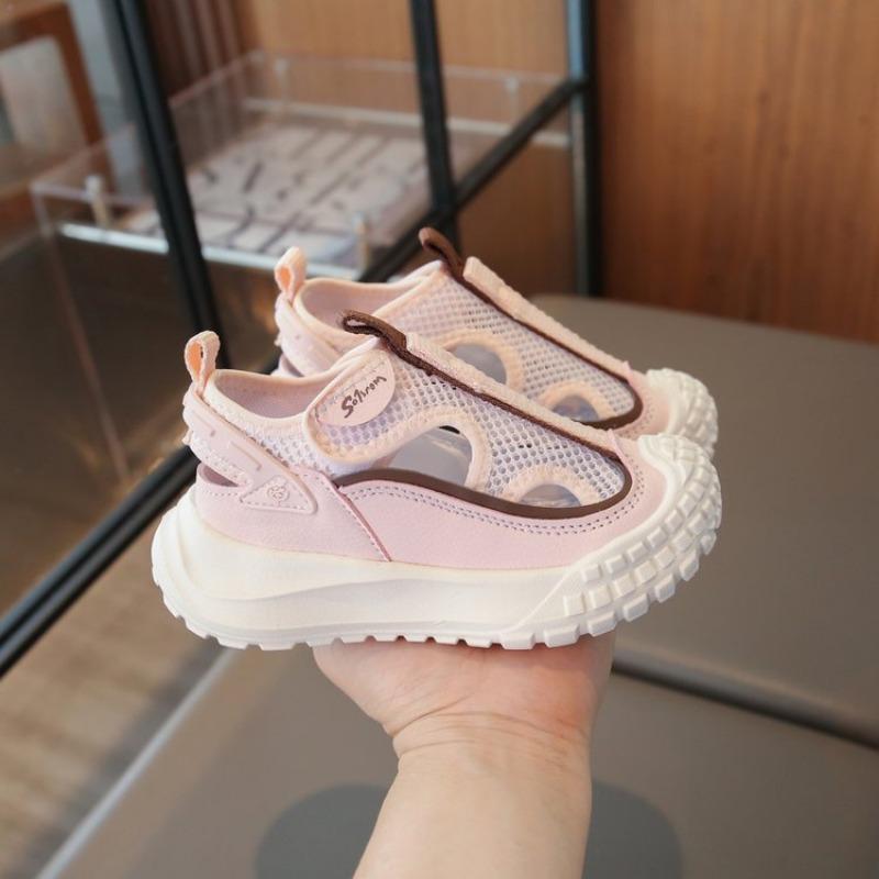 Детская сетчатая спортивная обувь, полая дышащая обувь для речного треккинга, сандалии для мальчиков в корейском стиле, повседневная обувь на мягкой подошве для девочек 37 розовый