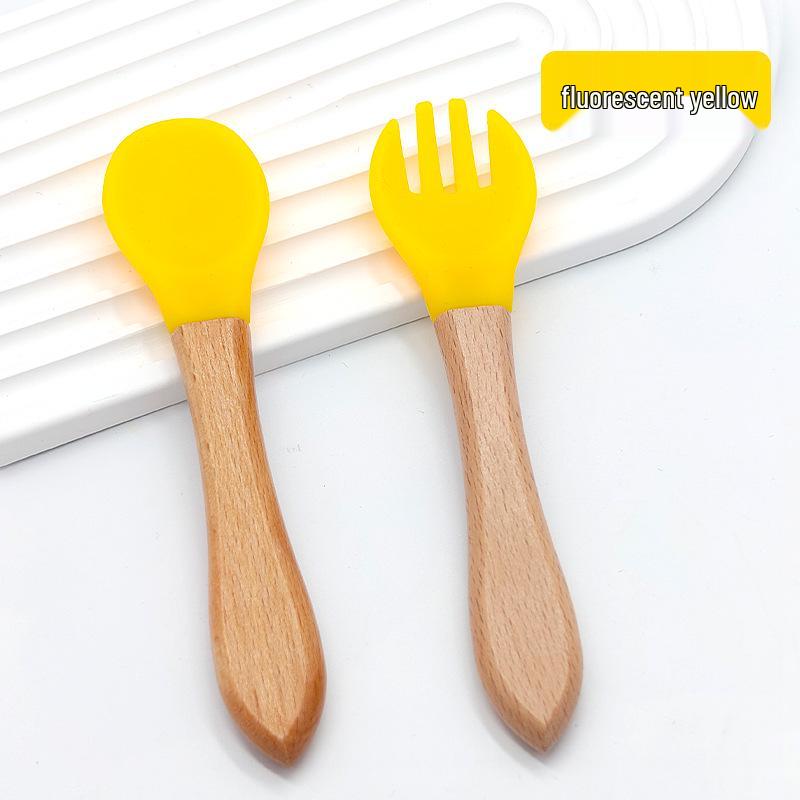 Детская силиконовая ложка для кормления с деревянной ручкой - Мягкая, термостойкая, из пищевой резины, столовый прибор для младенцев.