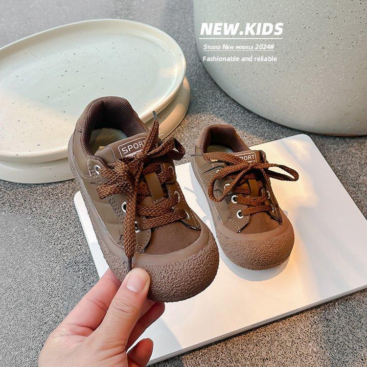 Детская спортивная обувь весна 2025 новая для мальчиков и девочек корейская версия ретро обувь с большой головой повседневная обувь для скейтборда легкая и нескользящая влагоотводящая 33 темно-коричневого