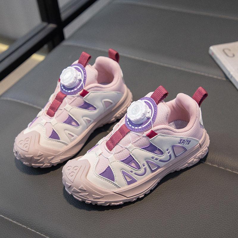 Детская спортивная обувь, толстая подошва, износостойкая, нескользящая, удобные вращающиеся кнопки, черно-белая, простая, грязеотталкивающая и красивая. 32 розовый