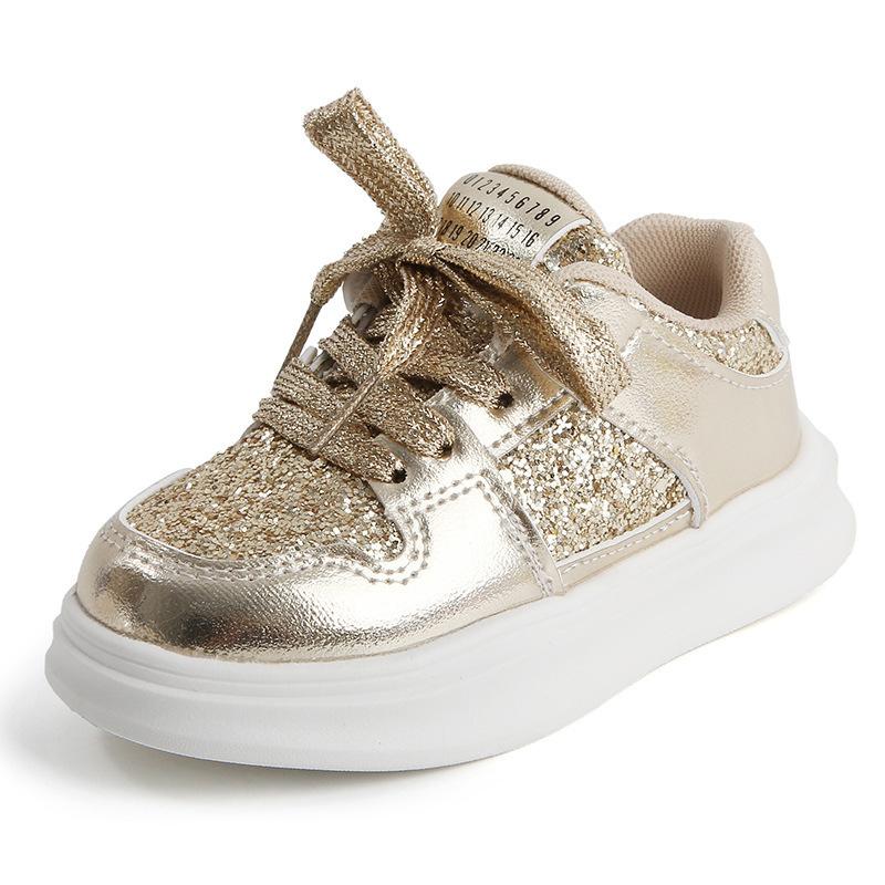 Детская спортивная обувь 2025 года, весна и осень, блестящая повседневная обувь для девочек, мягкая подошва для мальчиков 21 золотой